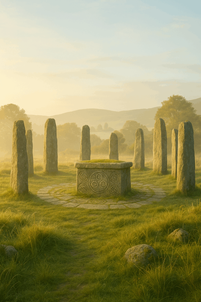 Thornarᛃ (Jara)Spirale double autour d’un point centralCroissance, vie, féconditéDieu de la vieBienveillance, renaissance, chaleur« Par la sève de Thornar ! »Sources claires, maisons familiales, forêts sacréesLavage rituel des mains avant tout soin ; offrande de miel et d’eau pure.