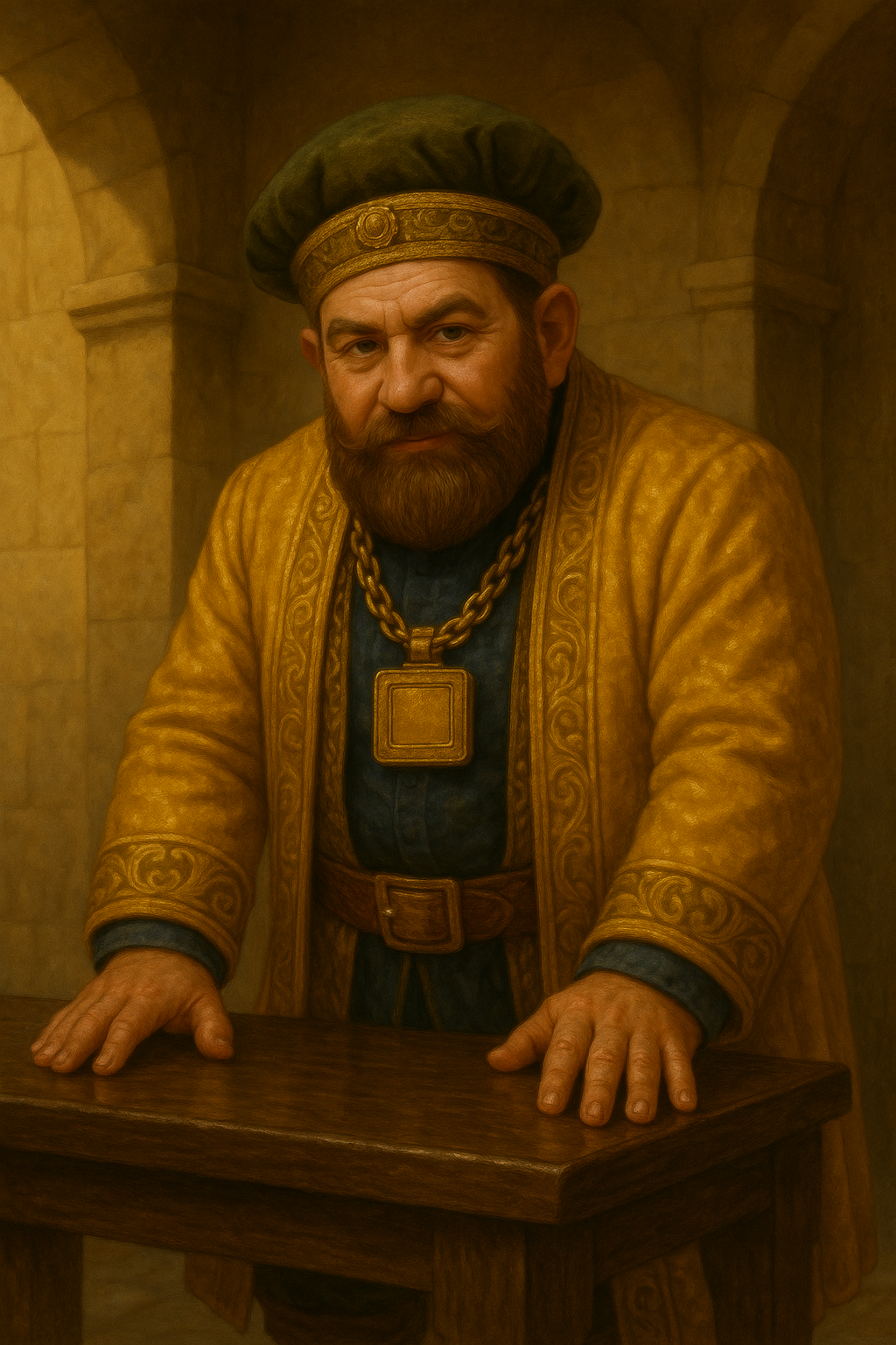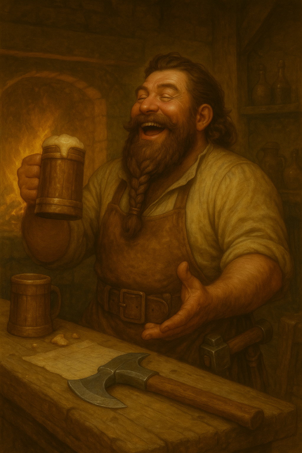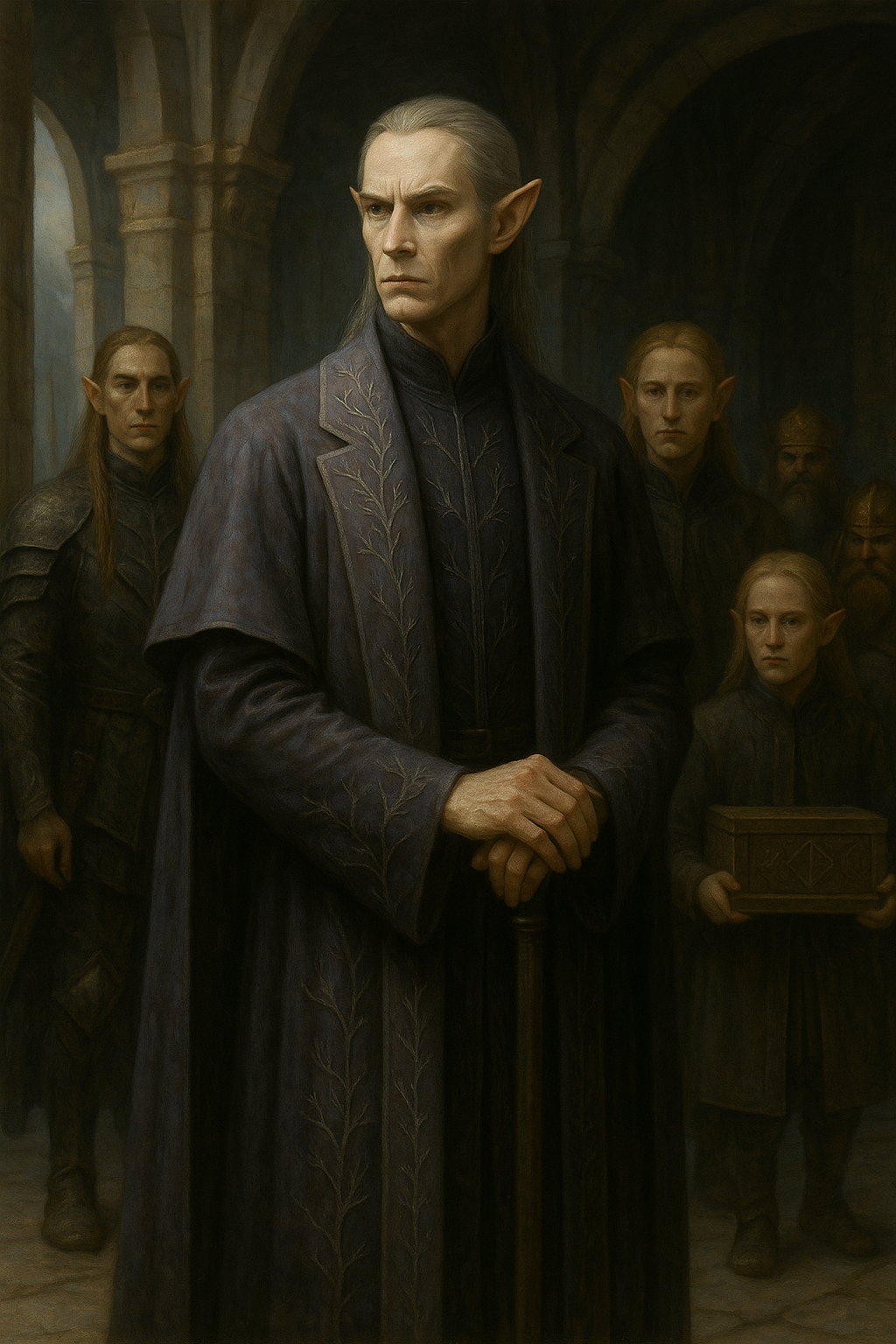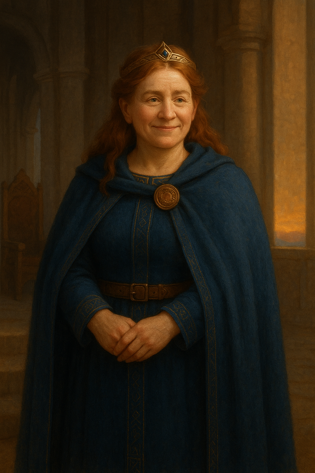 - Description : Imposant, manteau bleu nuit, barbe poivre et sel tressée de perles d’os, regard clair et froid. Charismatique, mystérieux, respecté, stratège pragmatique. Commande la frégate Borrwyn.